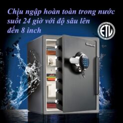 Với thiết kế chống nước tiên tiến, két có thể ngâm trong nước lên đến 72 giờ mà vẫn bảo vệ tốt các vật dụng bên trong khỏi bị hư hỏng do ngập lụt hay thiên tai. -
